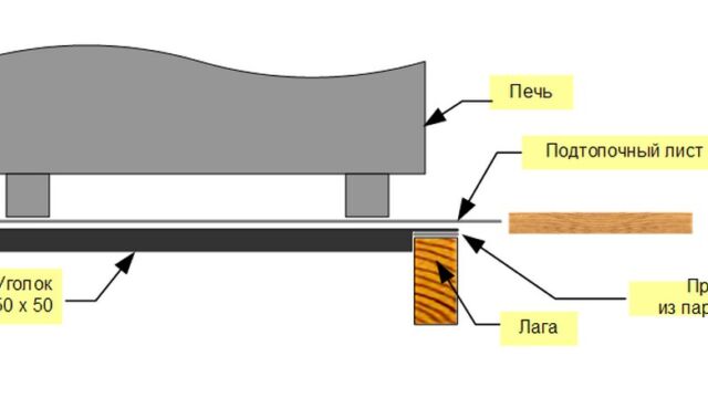Под печкой обязательно нужно как минимум разместить стекломпагниевую плиту и отражающий металлический лист.