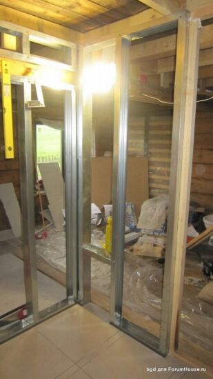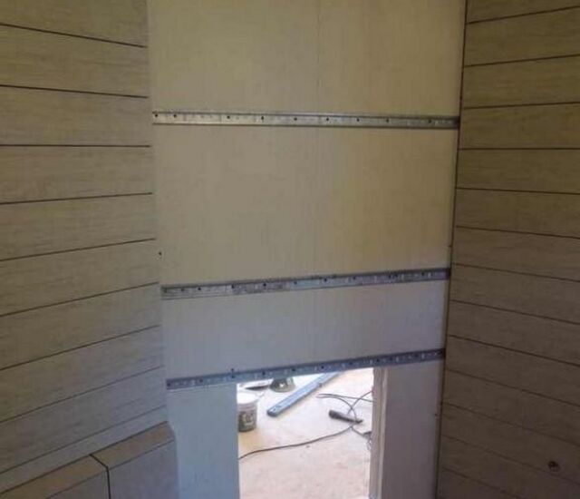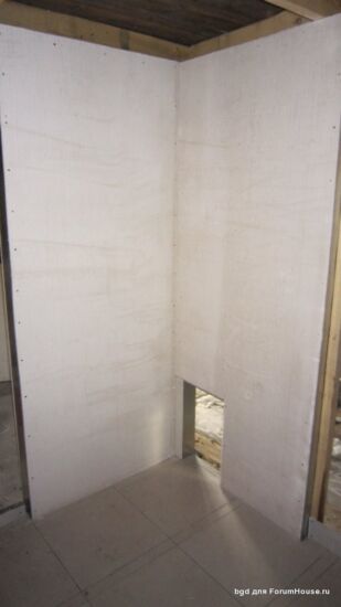 Ещё похожая технология без использования каркаса — стекломагниевый лист крепился непосредственно на фольгированную пароизоляцию стен.