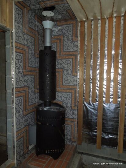 Разумеется, это не оправдание для нарушения стандартов пожаробезопасности, установленных специальными ответственными органами, основанных на экспериментальных научных исследованиях. В то же время, производители финских печей в технологических документах к своей продукции указывают другие цифры для безопасного размещения своих металлических печек в стенах парилки. Так, например, при обустройстве защитного экрана допустимое расстояние до стены составляет всего 250 мм.