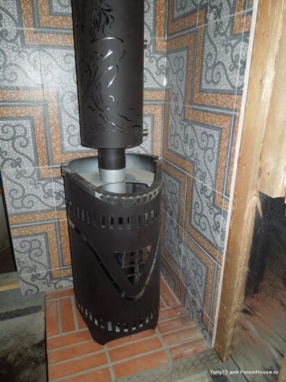 Выбирая конструкцию защитного экрана всегда в первую очередь смотрите на тип вашей печи и температуру, до которой она прогревается. Если у вас серьёзная габаритная печка с большим количеством камней, которую нужно 2-3 часа топить, прежде чем заходить в парилку, то лучше всего использовать надежный двухслойный теплобарьер, установленный на саморезы через керамические втулки. Также имеет значение соблюдение правильной технологии протопки печи, чтобы металл в топке не нагревался до свечения, так как это приведет к более раннему износу печи и превышению паспортных температур нагрева корпуса.
