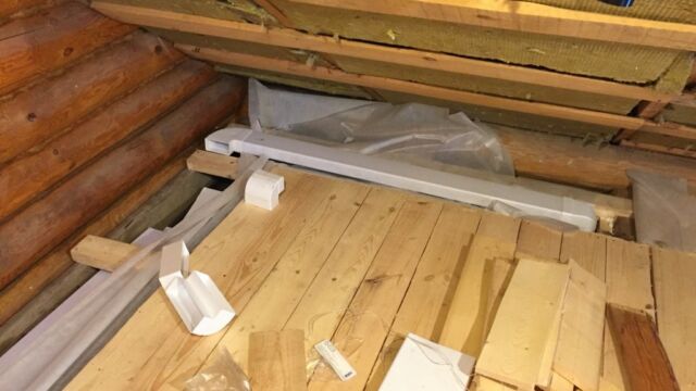 Последний этап — монтаж настила чистового пола, если на мансардном этаже планируется проживание. Жилое помещение под крышей обязательно следует утеплить, уложив минеральные плиты теплоизоляции под кровельным материалом.