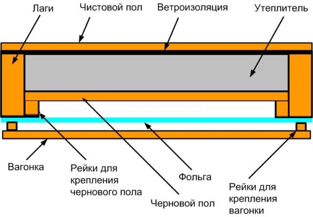 На практике доказано, что только минеральная вата соответствует всем требованиям, которые предъявляет такой режим эксплуатации. Использование пенопласта или экструдированного пенополистирола крайне не рекомендуется. Тем более, что будет вполне достаточно базальтовой ваты с минимальной плотностью 10-15 кг/м³, так как материал располагается горизонтально и не испытывает практически никаких нагрузок.