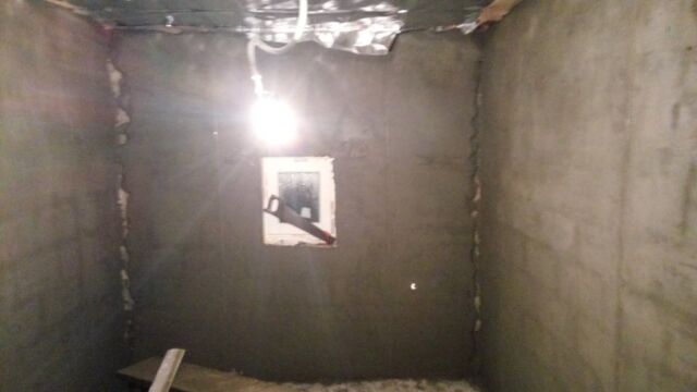 Также здесь не использовался деревянный каркас при монтаже вагонки. В такой конструкции есть своё преимущество — при подаче воды на камни образуется большое количество пара, давление в парилке вырастает и пароизоляционная плёнка совершает небольшое движение под воздействием резкого перепада. Если зафиксировать её вагонкой то всей плоскости с одной стороны и прижать плитами теплозащиты с другой, то этого происходить не будет и плёнка прослужит дольше.