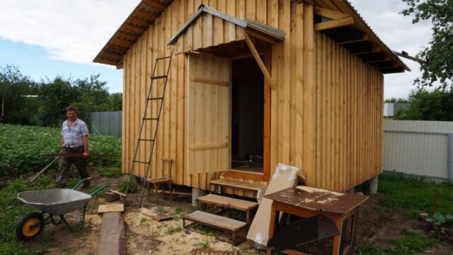В этой небольшой каркасной бане были использованы стандартные технологии изготовления каждого помещения.