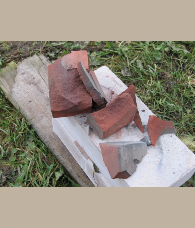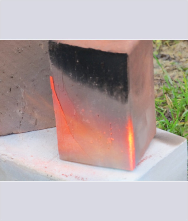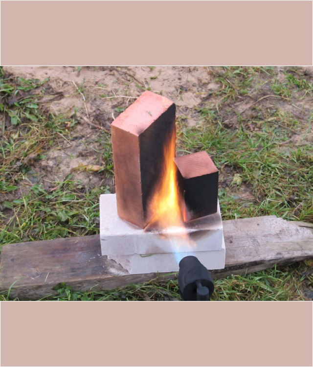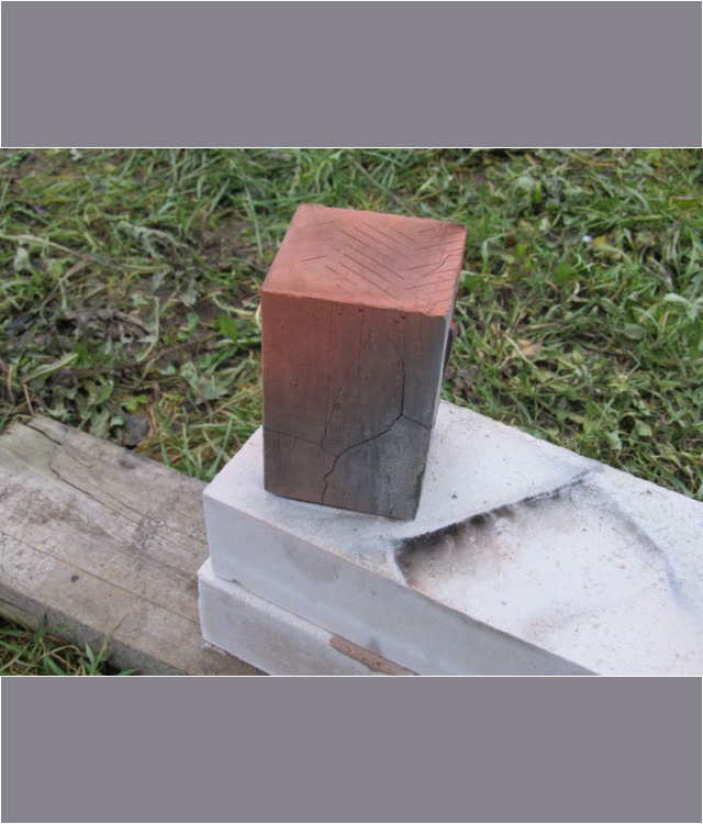 Как видно, результатом продолжительного воздействия открытого пламени из газовой горелки стало то, что кирпич Лоде заметно растрескался, в то время как Витебский сохранил целостность. Далее треснувший образец был отпущен в свободное падение с высоты 15 см на твердую поверхность, что привело к его полному распаду.
