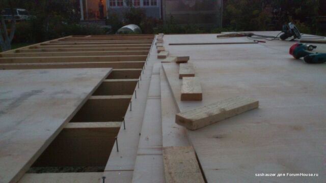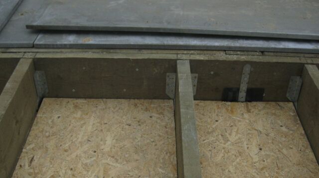 На слой теплоизоляции выполняется монтаж чернового пола из ЦСП (цементно-стружечные плиты), а стыки между материалом заделываются силиконовым герметиком. В качестве альтернативы ЦСП подойдет также и ОСП или фанера.