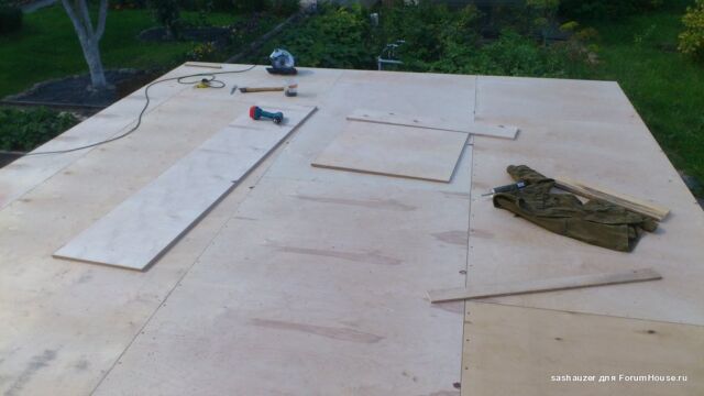 Для защиты его от влаги, на фанеру (ОСП, ЦСП) либо укладывается плотная пленка гидроизоляции, либо наносится слой гидроизоляционной мастики, типа простой битумной мастики или специальной брендовой, например Kiilto Fiberpool.