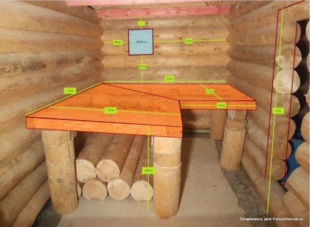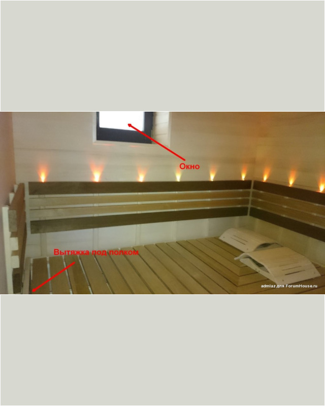 Под полоком устанавливается дополнительное вытяжное отверстие, которые закрывается на время протопки бани и открывается вместе с окном для проветривания парной после использования.