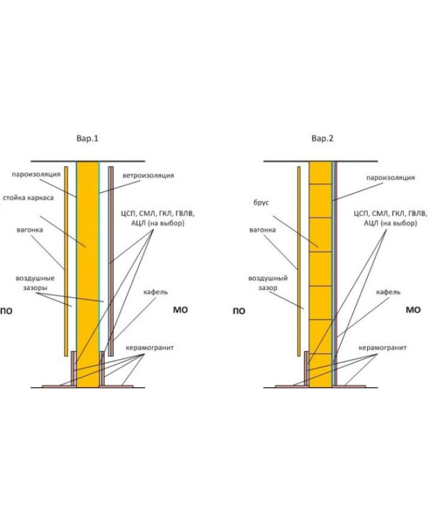 В бане и моечная и парная имеют высокую влажность и в каждом из этих помещений, как правило, выполняется монтаж паронепроницаемой плёнки, чтобы защитить деревянный каркас от большого количества влаги, находящейся в воздухе обоих отделений. Если же в простенке будут плиты минваты, то они, даже при условии создания герметичной защиты от влаги с обеих сторон, всё равно будут собирать влагу, а испарять её некуда.