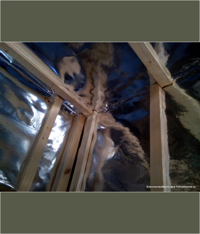 Далее на фольгированную парозащитную плёнку монтируется обрешетка.