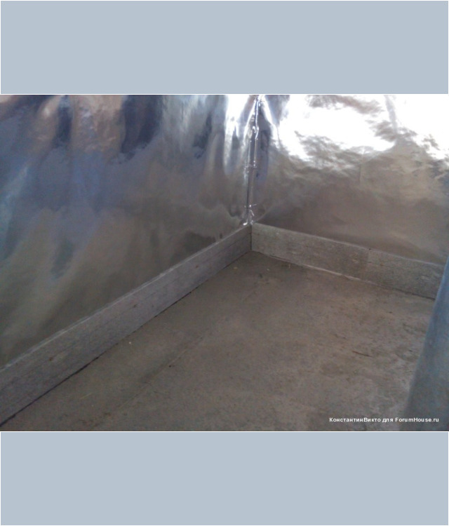 Важный момент — место примыкания стен к полу. Тут надо внимательно проследить, чтобы слой парозащиты был непрерывным.