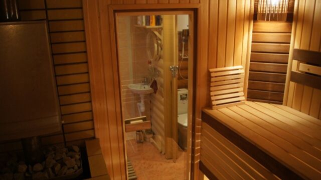 Стеклянная дверь в парилке бани: преимущества и недостатки