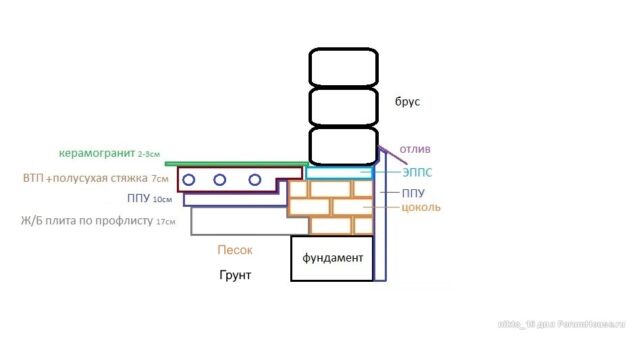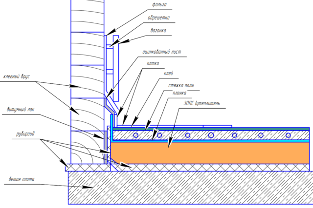 Аналогичная последовательность действий и расположение слоёв используется в помывочной и парилке — также, как и в комнате отдыха, о которой шла речь выше. Единственное отличие в данном случае заключается в организации небольшого уклона стяжки по направлению к сливному отверстию.