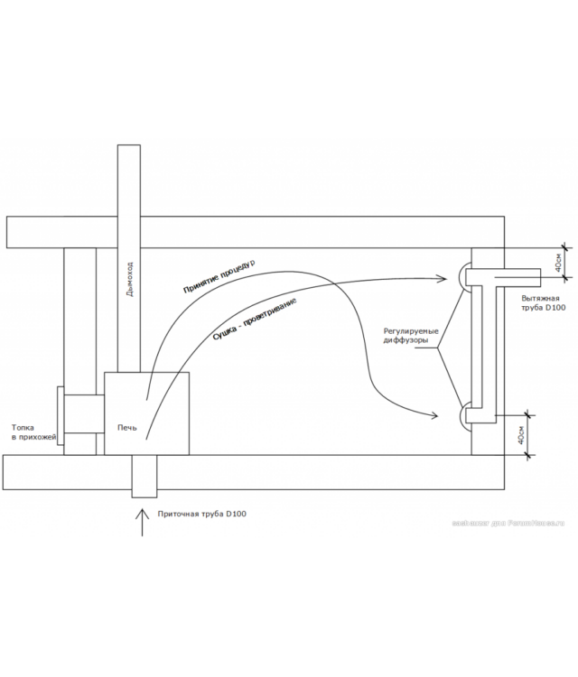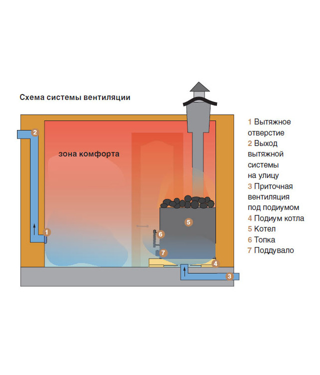 Оптимальная схема вентиляции в парной