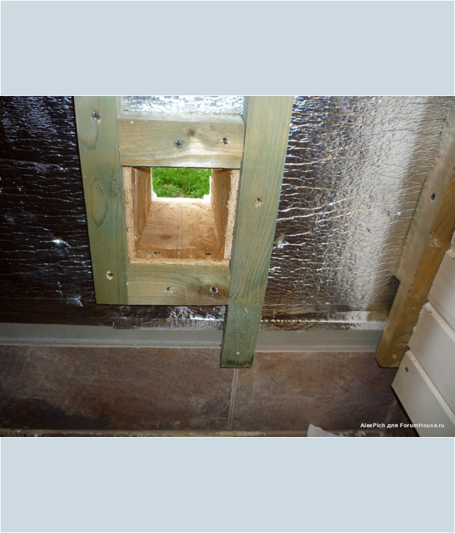 Пример установки входящего вентканала для каркасной бани, установленной на свайном или столбчатом фундаменте.