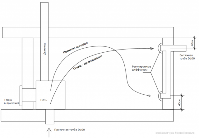 Ниже можно видеть ещё один пример реализации оптимально схемы вентиляции, размещенной ранее.